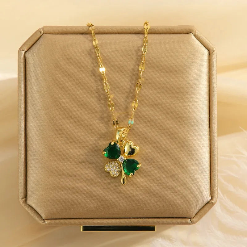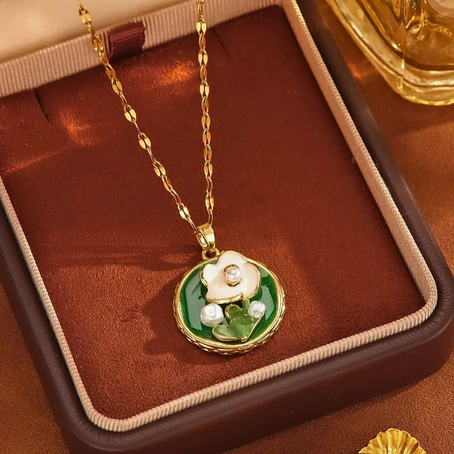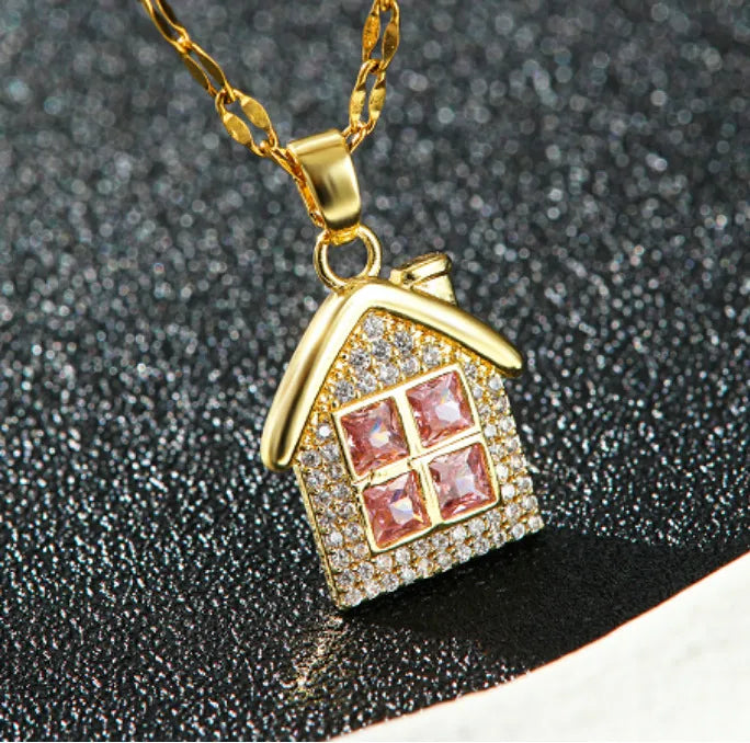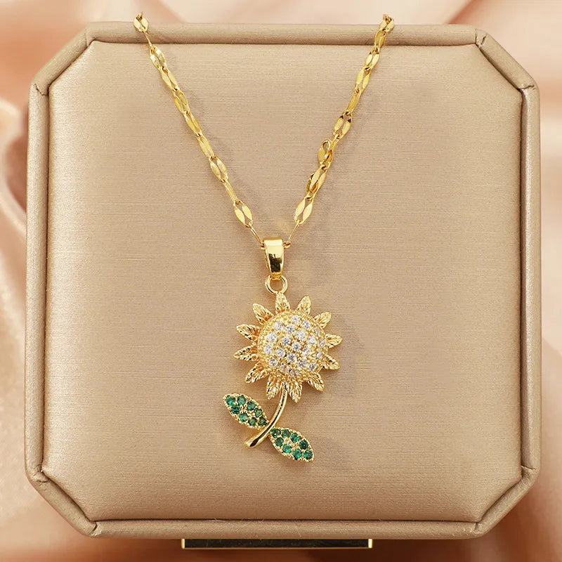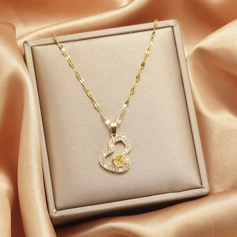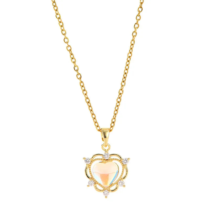 lady heart shape flower titanium steel plating inlay zircon gold plated pendant necklace