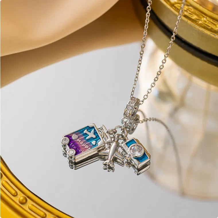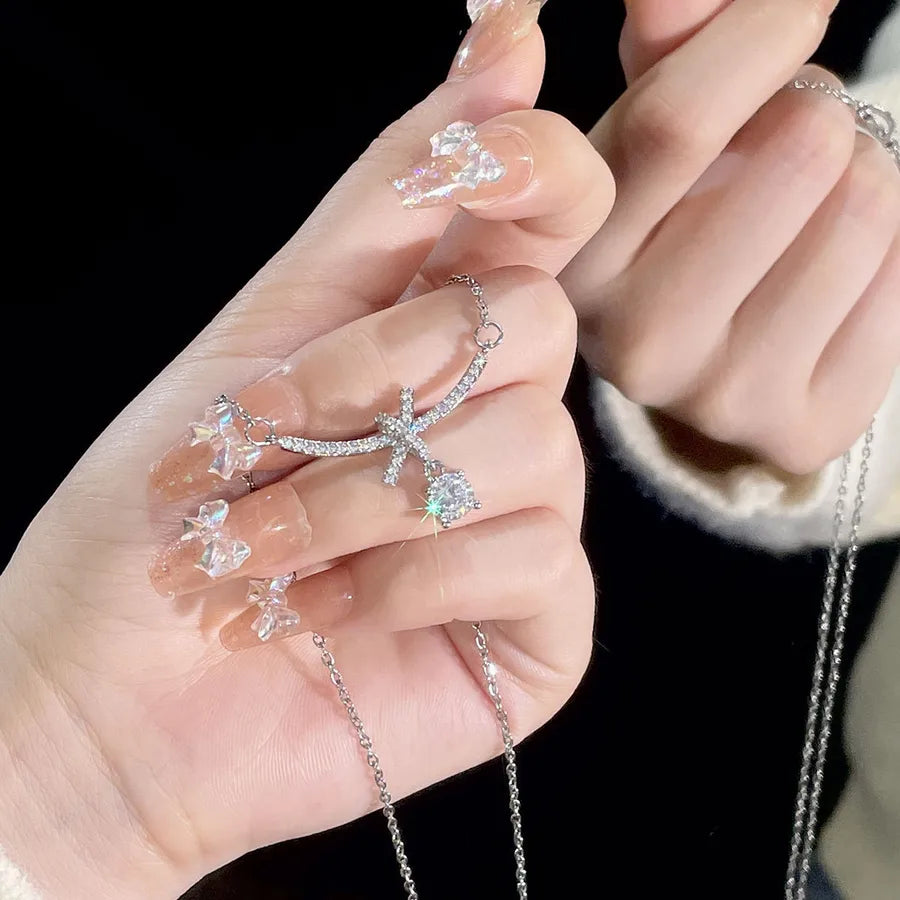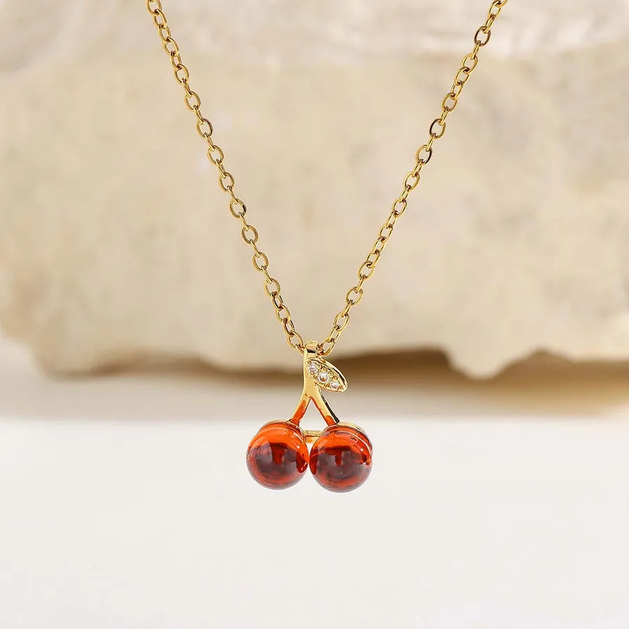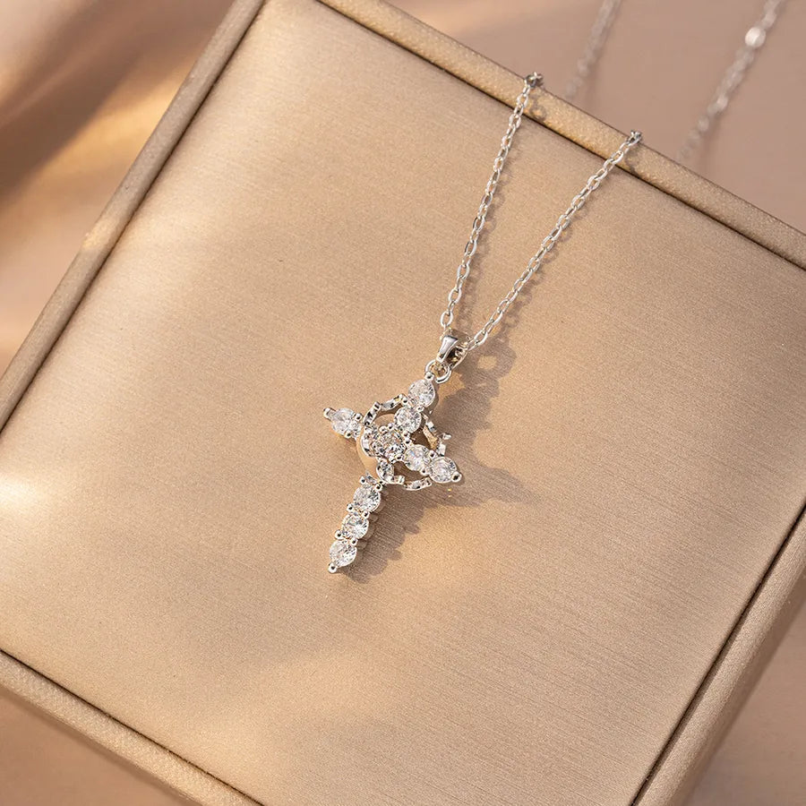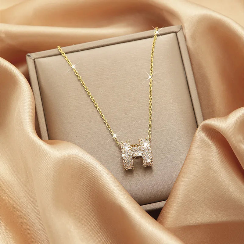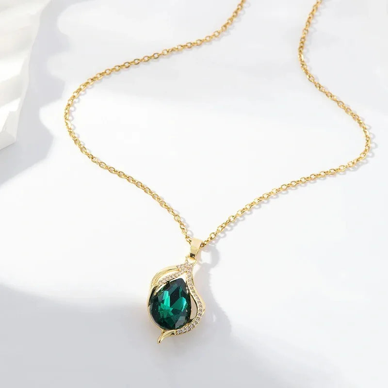 lady heart shape flower titanium steel plating inlay zircon gold plated pendant necklace