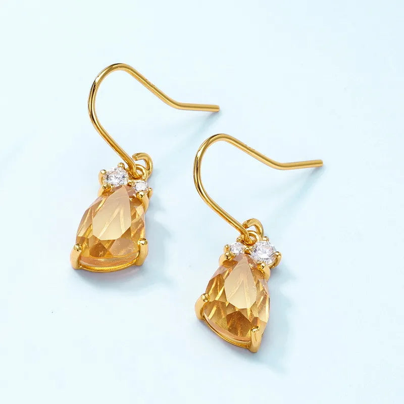 10K Gold Plated Simple Elegant Long Synthetic Crystal Ear Hook S925 Sterling Silver Earrings for Women