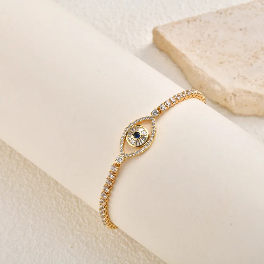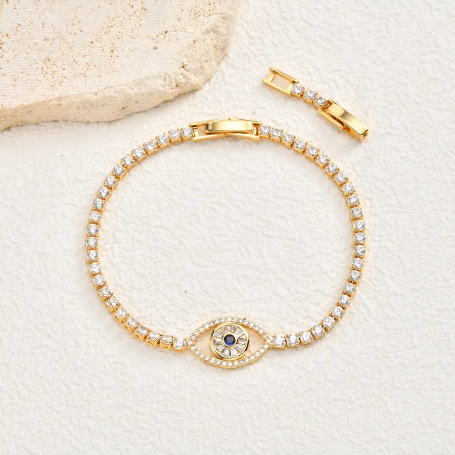 Devil's Eye Jewelry Set for Women in IG Style Featuring Electroplating with 18K Real Gold Plated Copper and Zircon Claw Setting Tennis Chain