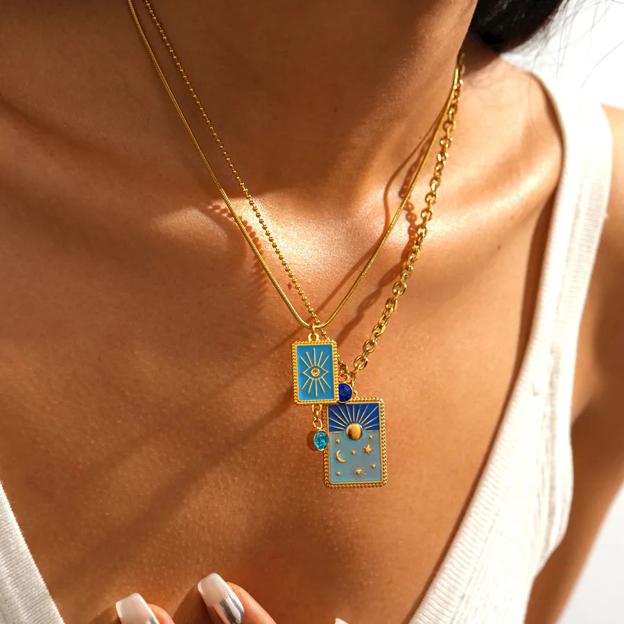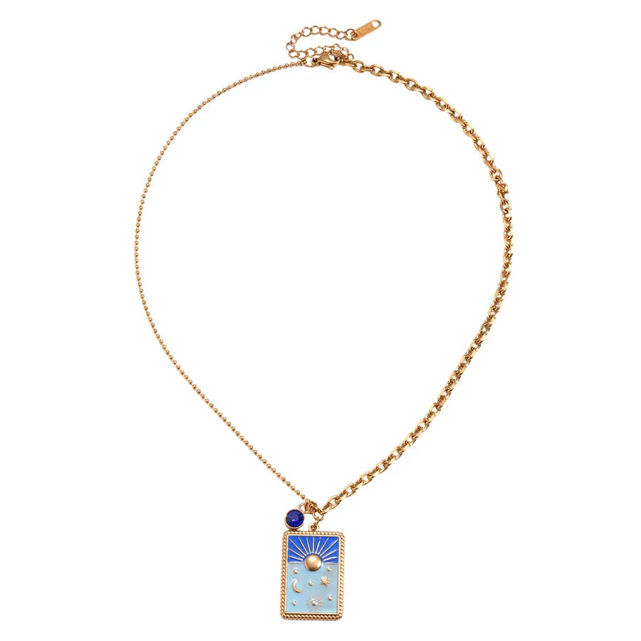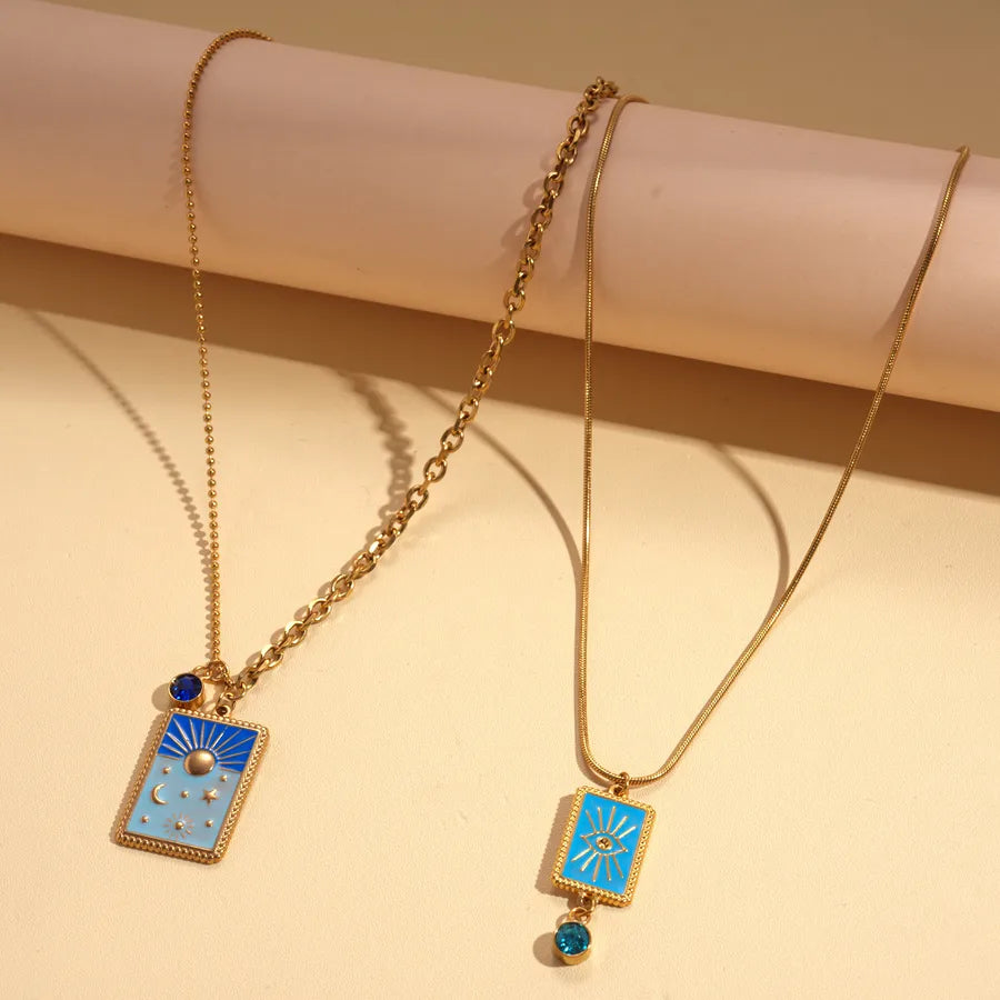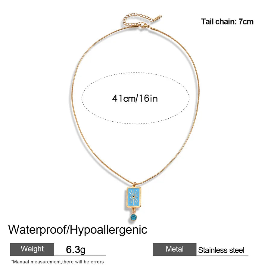 Square Stainless Steel Oil Drop Pendant Necklace Versatile Sense Jewelry Accessories