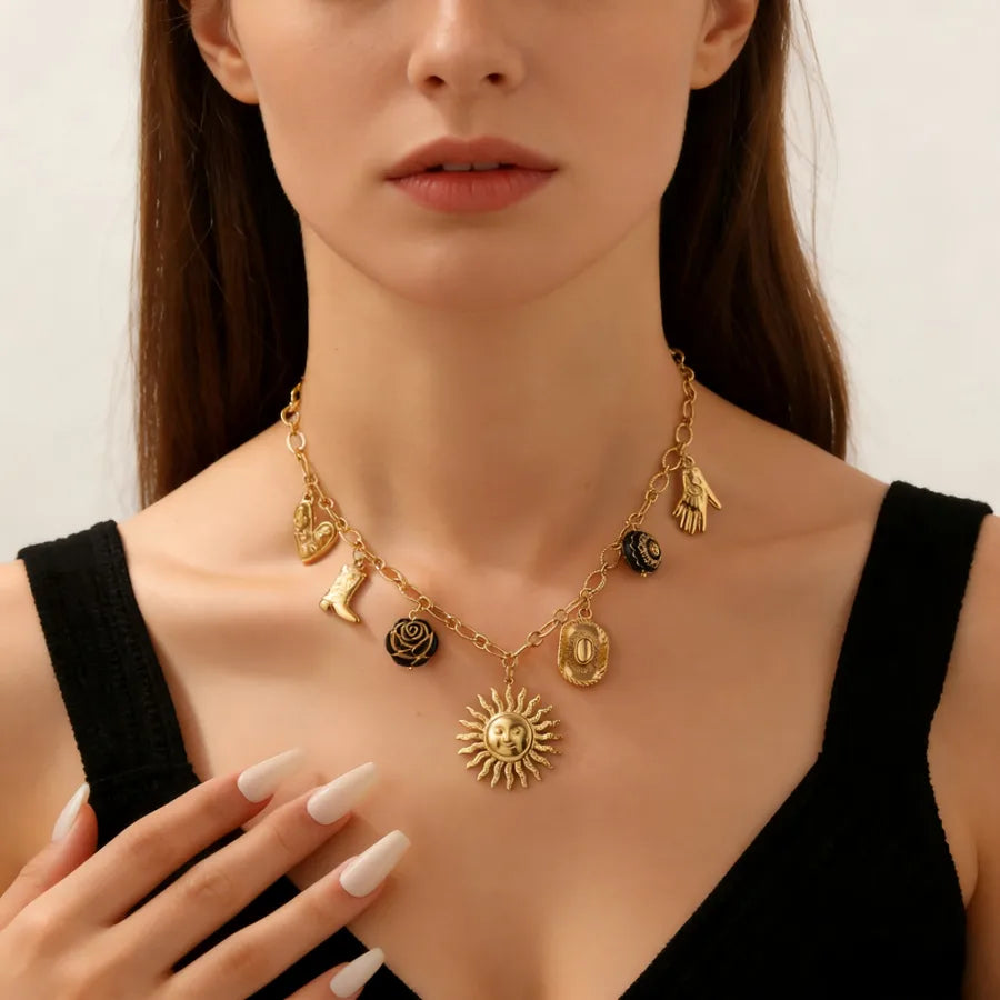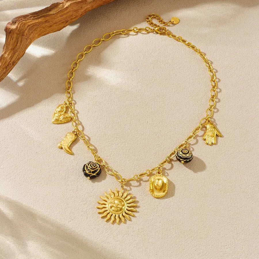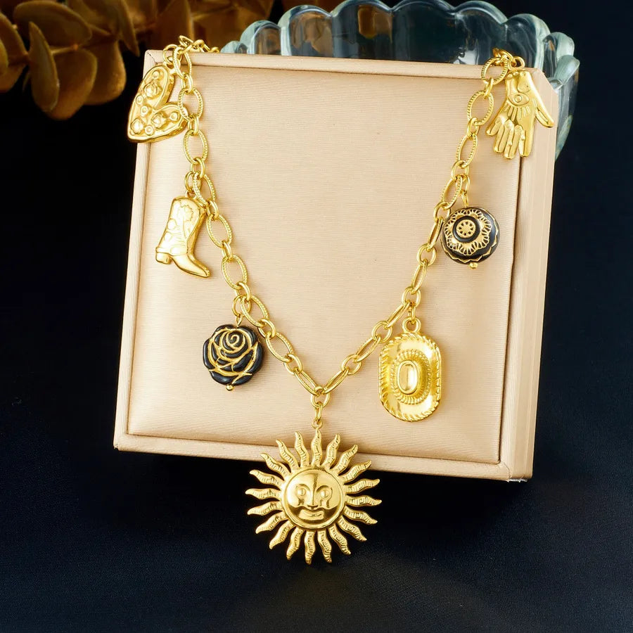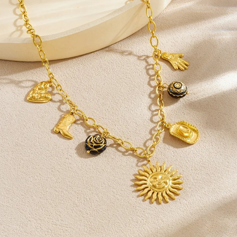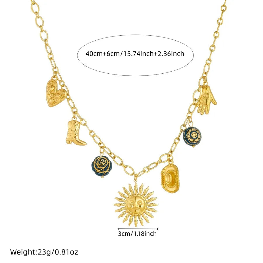 Sun Carved Acrylic Pendant Western Cowboy Boots Pendant Gold Plated 304 Stainless Steel Universal Electroplated Heart-shaped Multi Pendant Necklace for Women