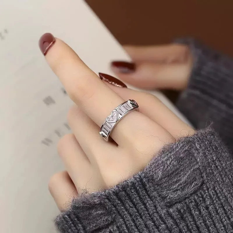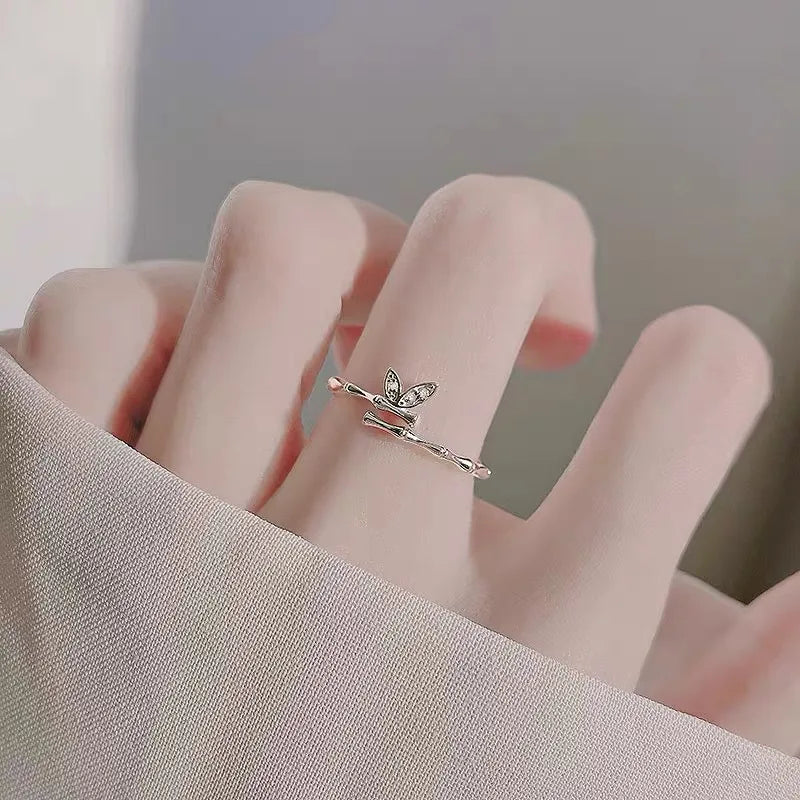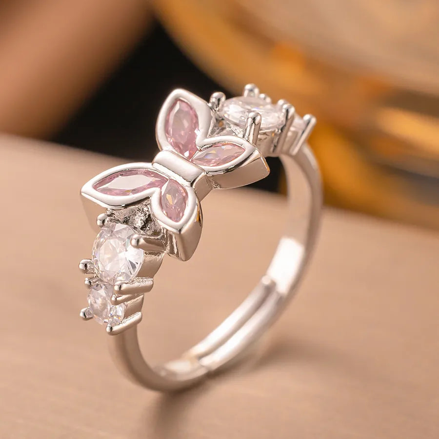 Wholesale Jewelry Elegant Glam Heart Shape Bow Knot Titanium Steel Plating Open Rings